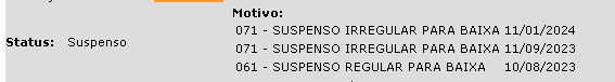 e agora o cadastro está suspenso irregular para baixa. Preciso fazer alguma alteração para que mude para suspenso e regular para baixa?