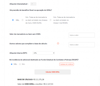 Realizamos o cálculo do DIFAL Não contribuinte da seguinte forma:
