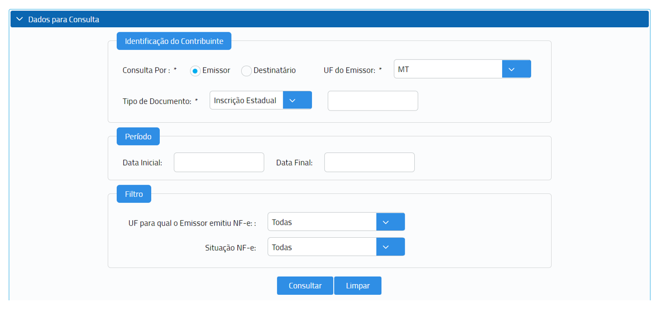 Em atendimento à vossa demanda, cumpre nos informar preliminarmente, que a SEFAZ/MT disponibiliza a opção de consultas relativas a documentos fiscais eletrônicos, inclusive com opção de geração de relatório em planilha do Excel, encontradas no acesso restrito ao Contabilista e ao Contribuinte MT, mediante uso de login e senha privativos, através do Sistema de Nota Fiscal Eletrônica (Nota Fiscal Eletrônica > Consultas NF-e > Consulta de NF-e Emitida/Recebida), consoante abaixo se vislumbra: