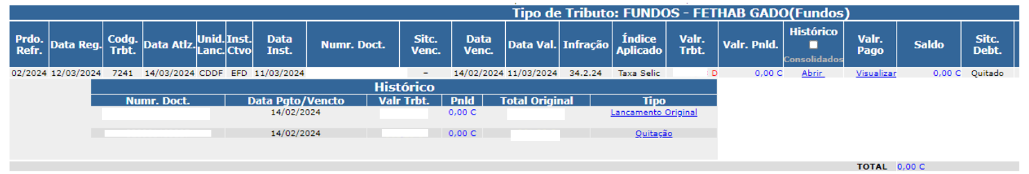 OBS.: A partir de 01/03/2024 ocorreu a implantação da Taxa SELIC como indexador e critério de quantificação dos juros de mora, devidos para pagamentos extemporâneos de débitos tributários e não tributários, o que pode ter causado o BUG do Sistema.